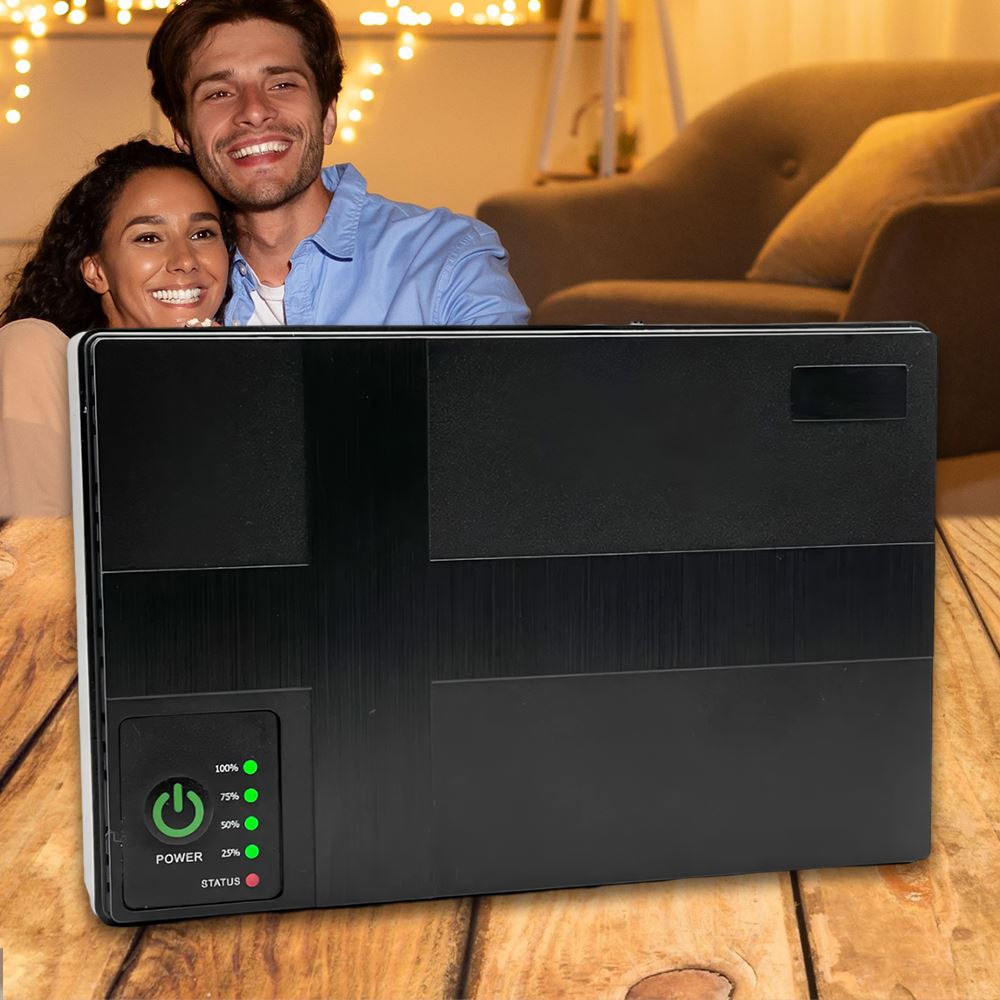 Компактний ДБЖ для безперебійного живлення роутерів, камер та інших пристроїв. Працює від мережі, а при відключенні світла автоматично переходить на роботу від вбудованого акумулятора.